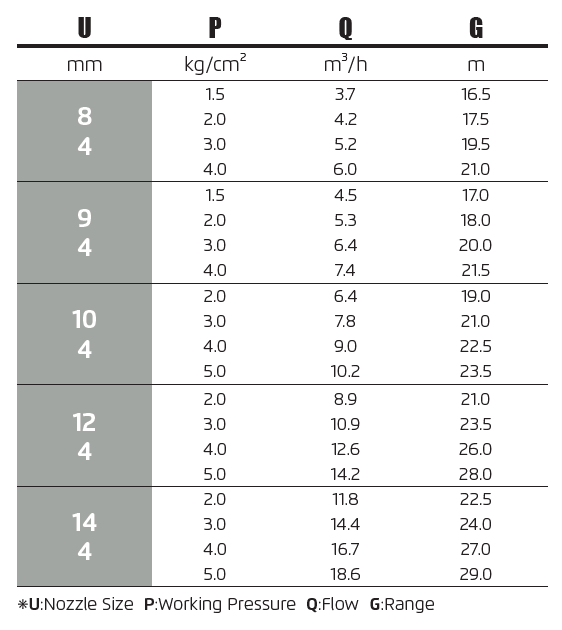 - Working pressure: 0.15-0.5 Mpa (1.5-5.0 kg/cm2)